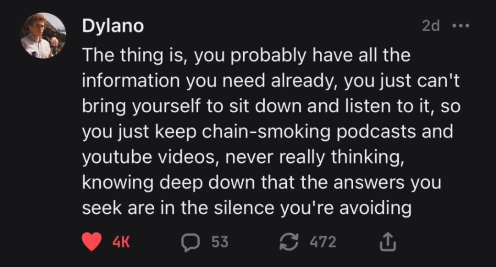 Everyday we’re drowning in a flood of messages aimed at our ever limiting attention spans. We’ll skip the statistics. We all feel it, we’re all sick of it. Yet, at this peak of communication, we’ve never felt more unheard, misunderstood or simply alone. No wonder when the majority of notifications, sponcon, ragebait, slop and brainrot don’t fit the description of what communication actually is: “an exchange of information.” A back and forth. A give and take.